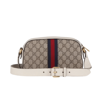 Brand: GucciBORSA A SPALLA OPHIDIA GG SUPREME PICCOLA BEIGE ED EBANO WEB VERDE E ROSSO