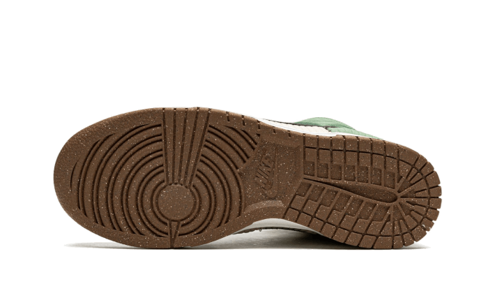 La Nike Dunk High Next Nature Summit White presenta una base in tessuto con cuciture tono su tono che danno un effetto materiale unico all’intera coppia. I colori sono verde, marrone, beige, nero e bianco. Infine, va notato che almeno il 20% del peso della coppia fatto di materiali riciclati.