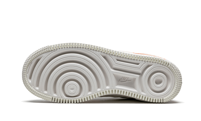 Il Nike Air Force 1 Shadow Barely Green presenta una base in pelle e una moltitudine di elementi spaccati sullo Swoosh, sulle etichette AIR e sugli occhielli. Ogni elemento del marchio presentato in un colore rosa arancione, che spicca sui dettagli verde chiaro. Una suola color crema migliora il look.